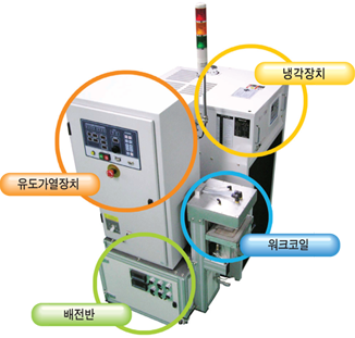 유도가열시스템은 4가지 주요 콤포넌트를 기본으로 구성 되어 있습니다.
